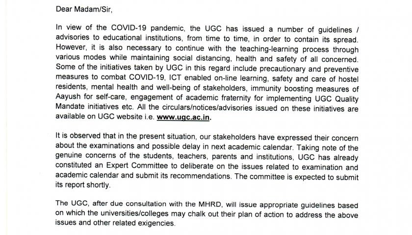 বর্তমান শিক্ষা পরিস্থিতিতে ইউজিসি-র গাইডলাইন